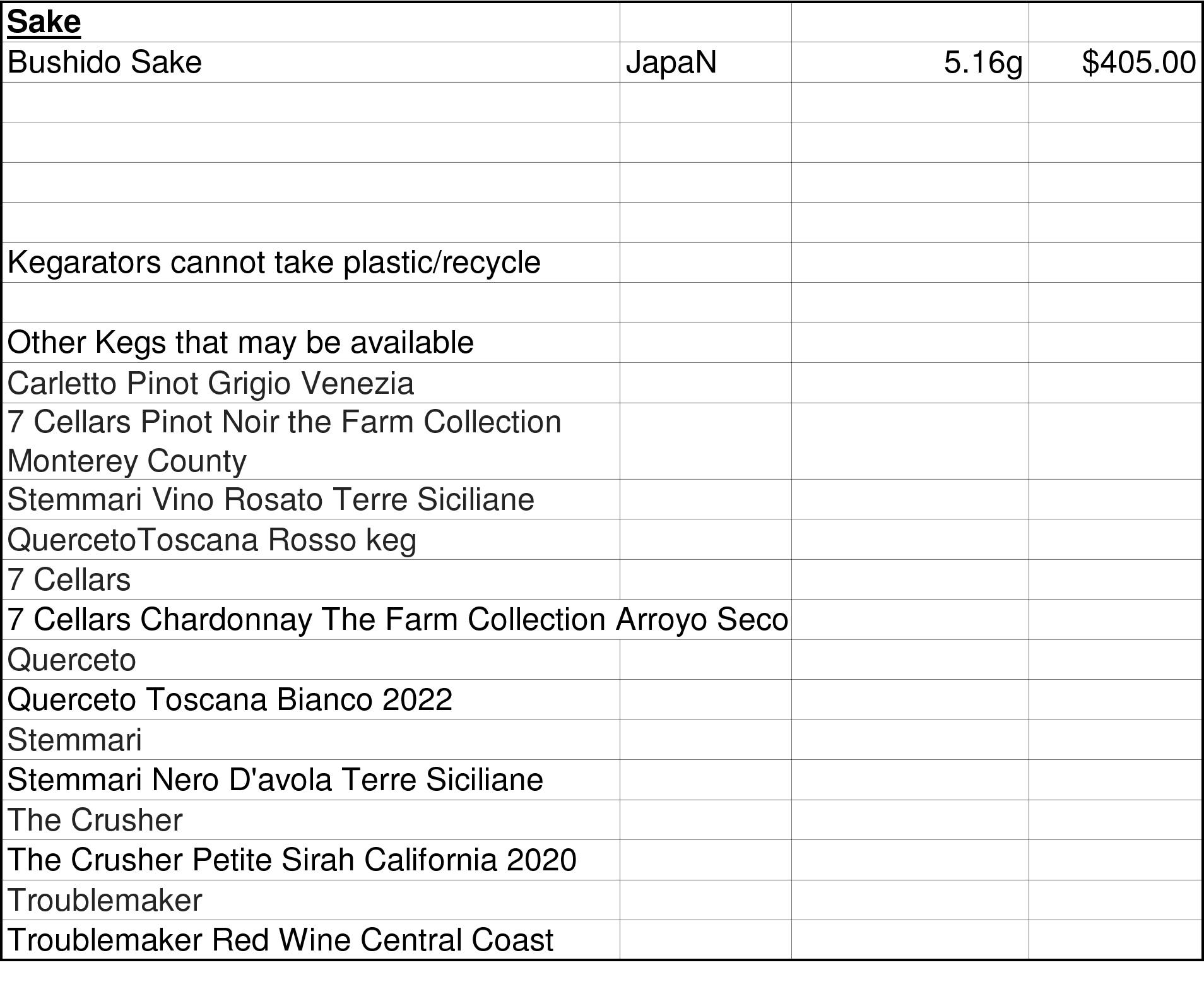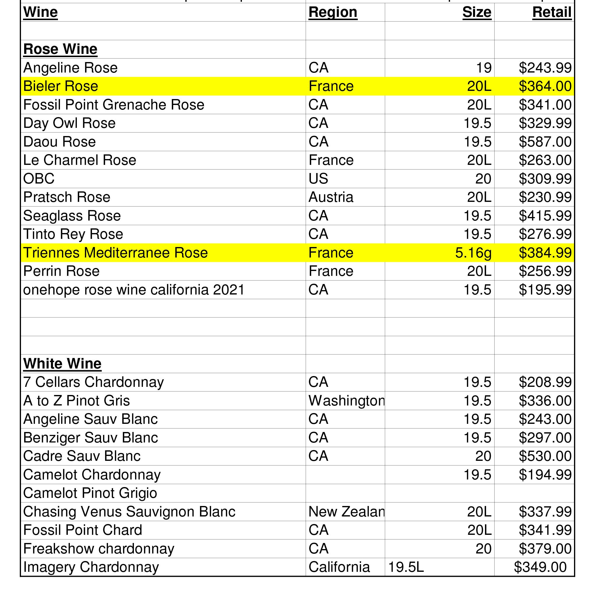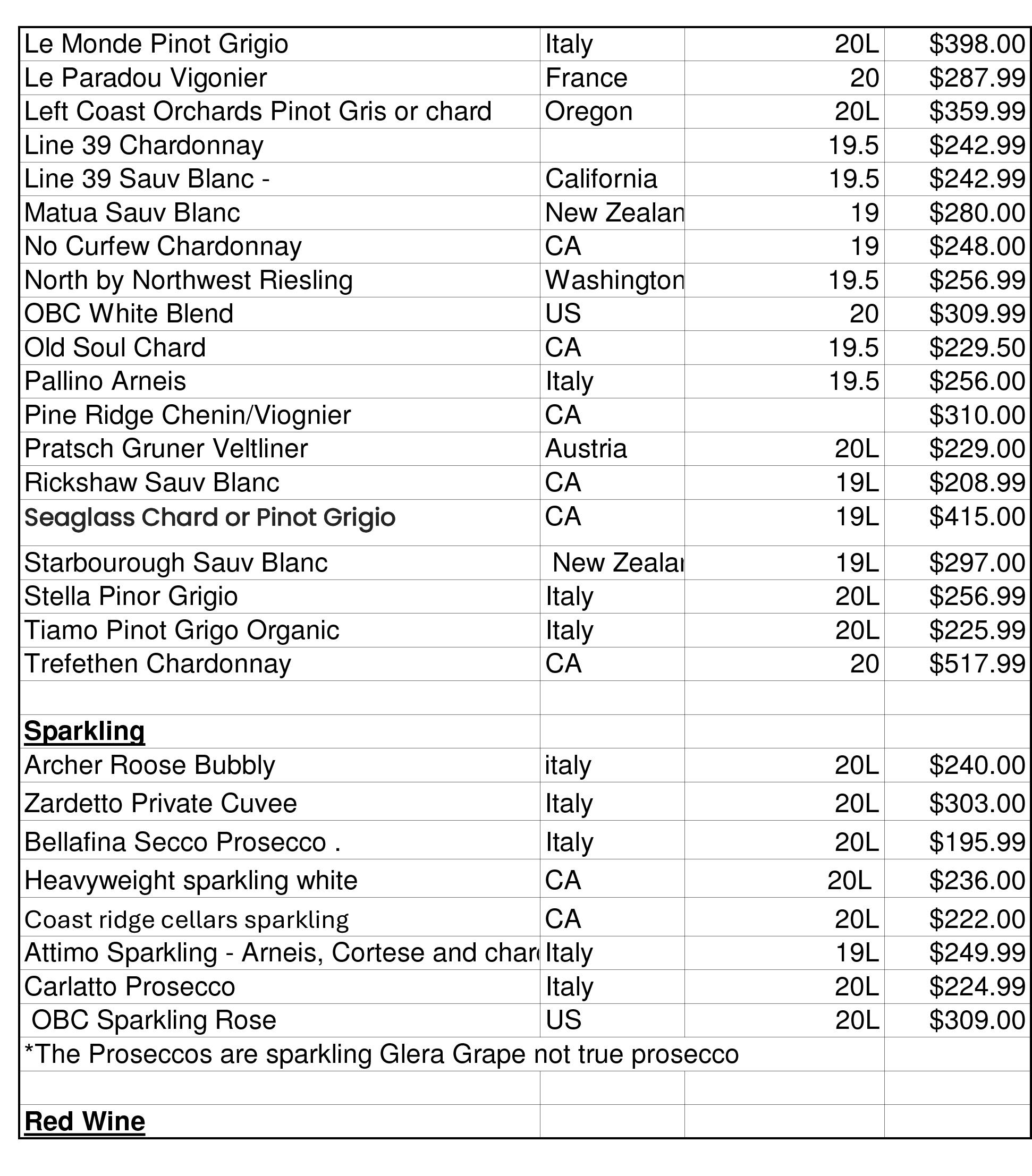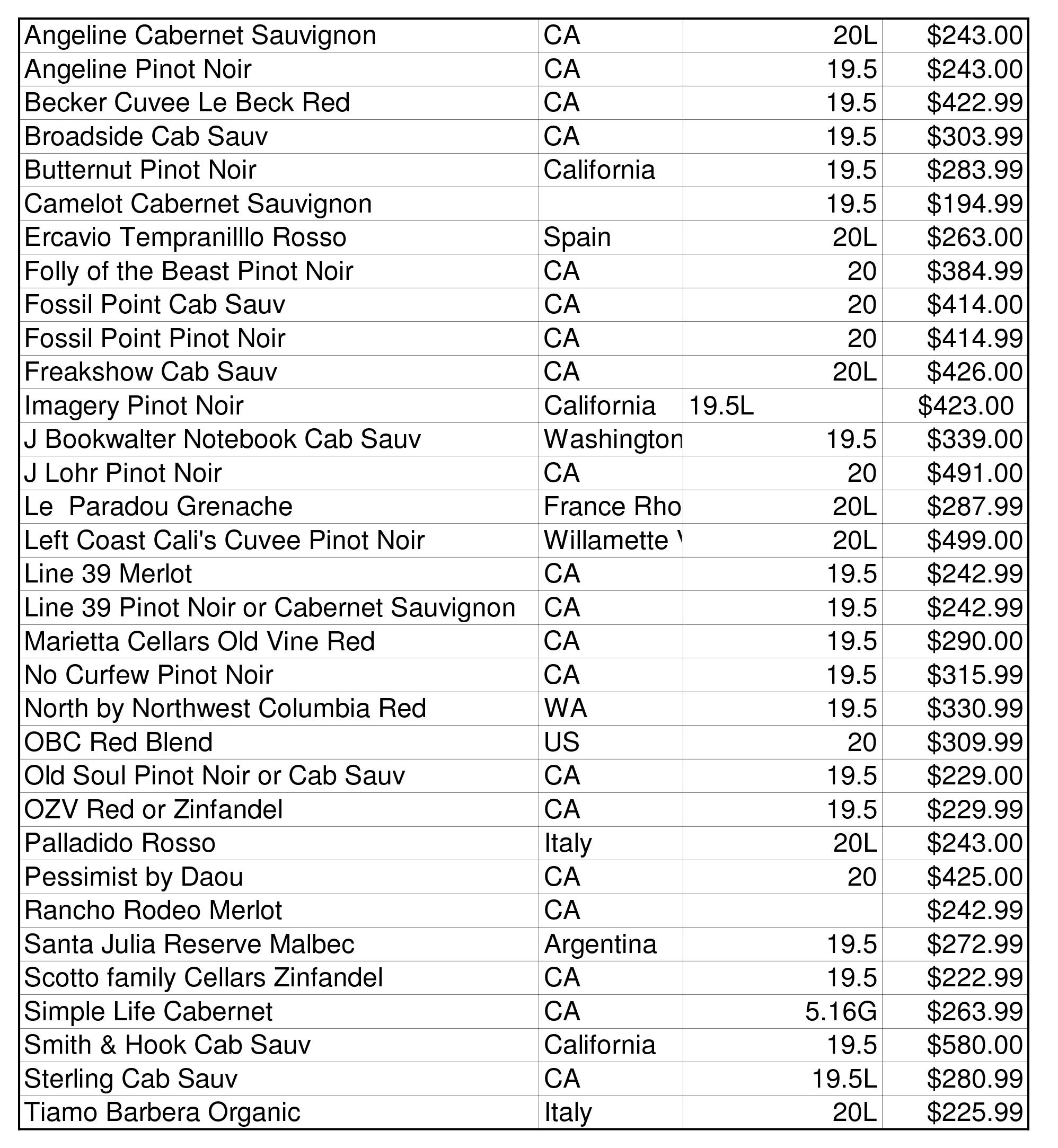 Email us for a current wine keg price list.