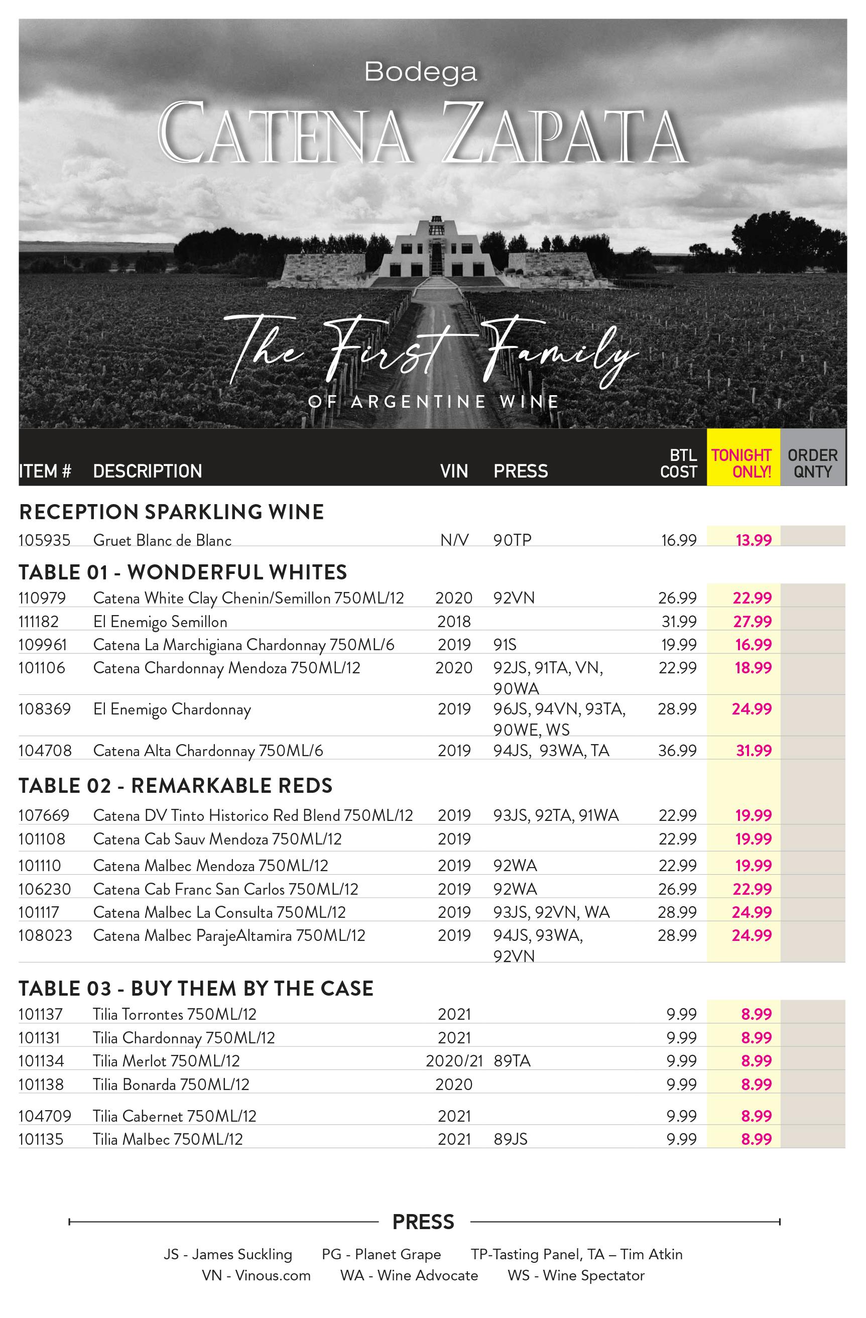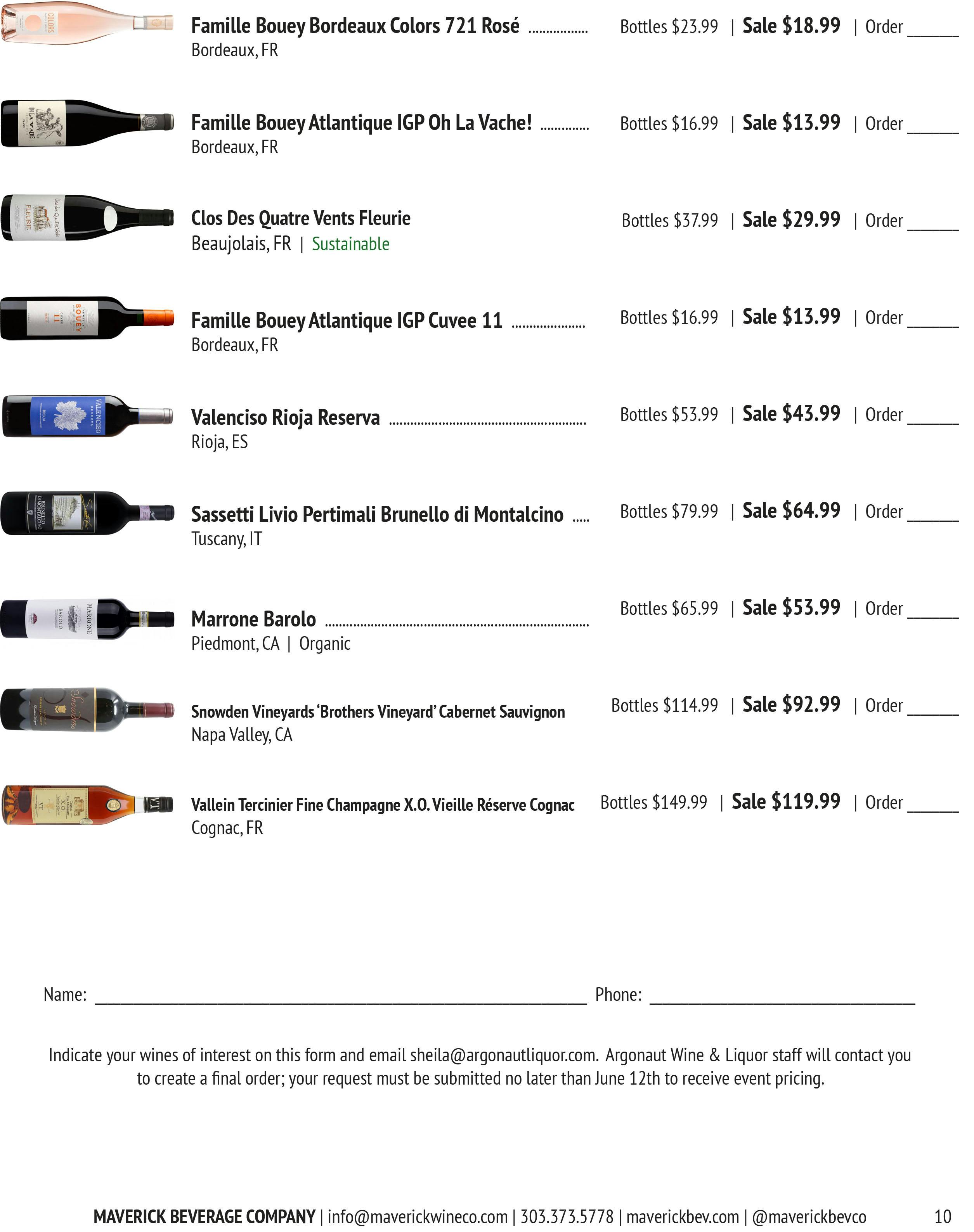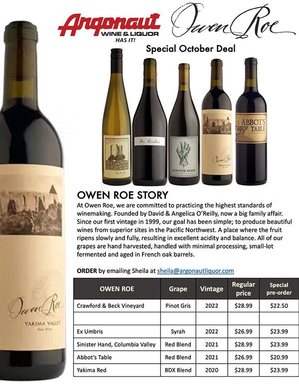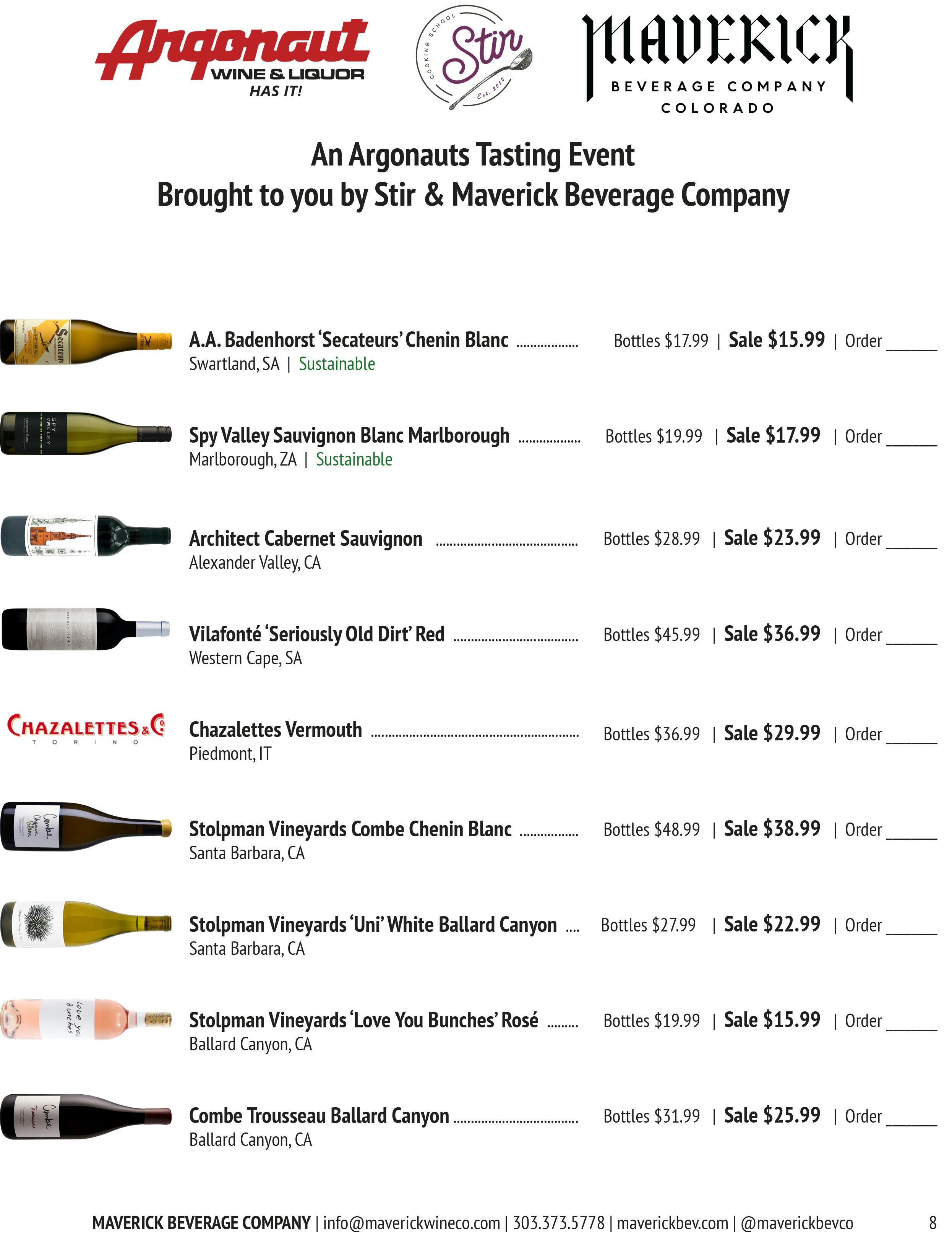 Orders due by Friday August 14th. Price is per bottle. Place orders to Sheila@argonautliquor.com