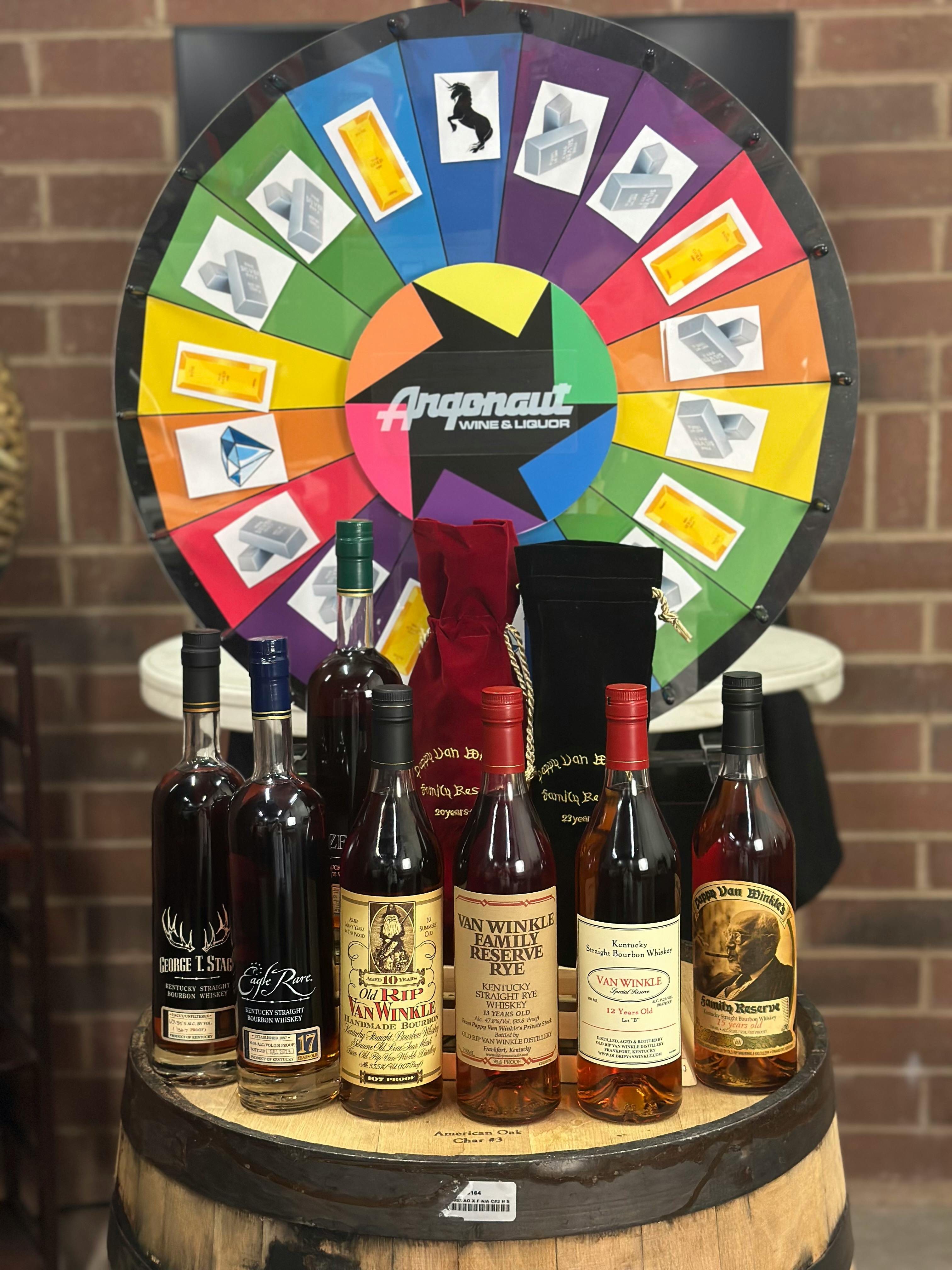 Due to the current circumstances and our commitment to social distancing this year's Whiskey Wheel will be done online! We will be live-streaming spins for those whose names are drawn from The Whiskey Wheel Lottery and winners can come in and purchase their bottle at their convenience. You can find the lottery box at the wine desk in the center of the store at The Argonaut and entries will be accepted from now until-6/14/2021.