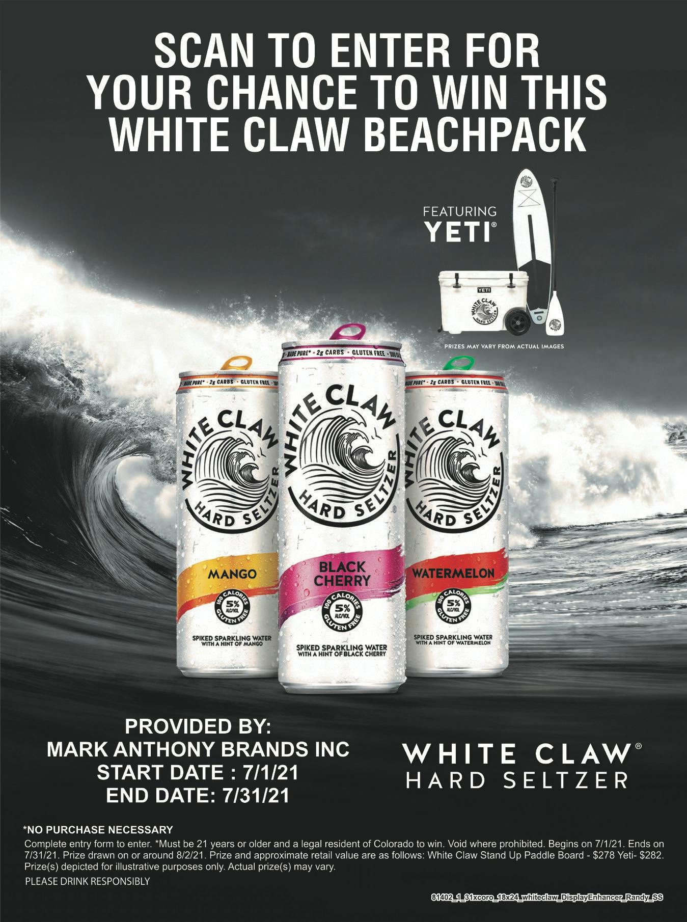 Drawing will be held on May 8th. One winner will be selected at random from the entries. Only local pick-up is available. No purchase necessary to enter. Participants must be 21+ to enter. Prizes must be claimed within 48 hours of the drawing. This promotion is in no way sponsored, endorsed, administered by or associated with Instagram...