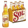 Sol, "The Original Mexican Sunshine Beer" is a Blond Mexican, light, festive and refreshing golden coloured Pilsner-style beer, with a fresh malty, fruity-lemony flavour and a soft, quenching dry finish, served chilled and drunk in the long neck bottle garnished with a fresh wedge of lime in the neck to accentuate the floral citrusy aroma of the beer. Great with lemony dishes like salads, fish, and chicken satays or spicier food like nachos, tacos or Thai dishes or summer barbecues.